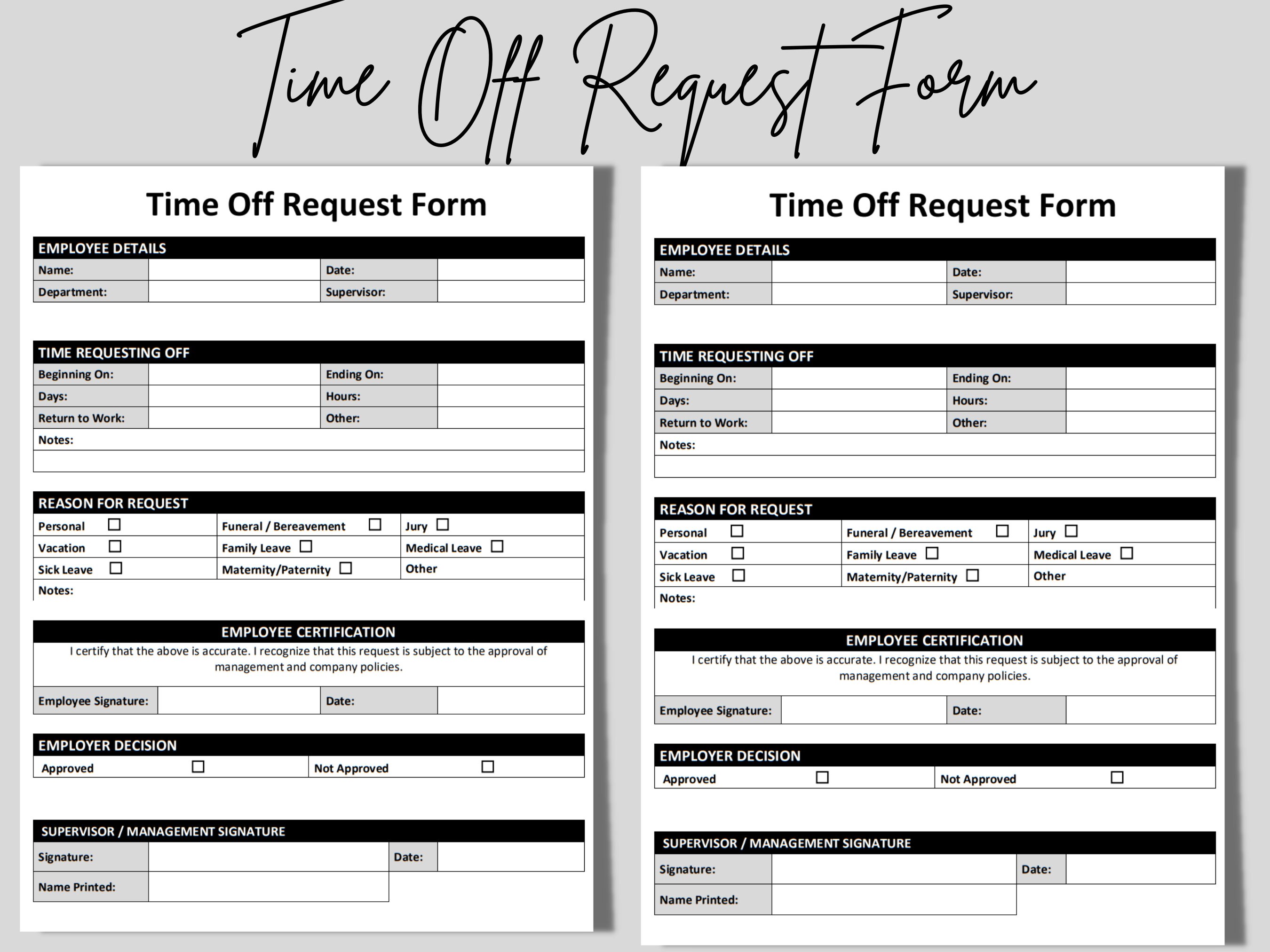 Employee Time Off Request Template Editable Word Hr Form Etsy